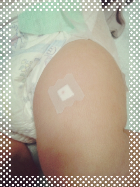 きゃーーぷっくりしたお腕に針がぷすりと・・・