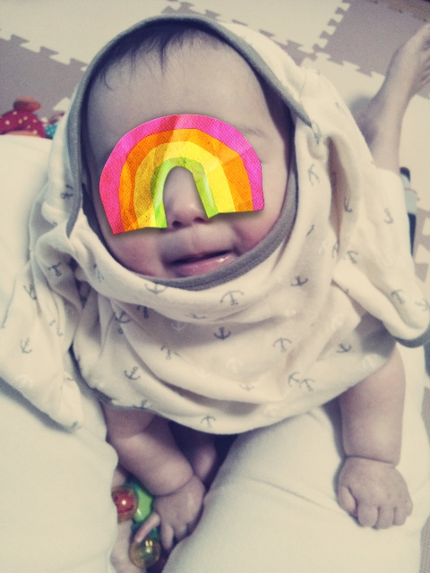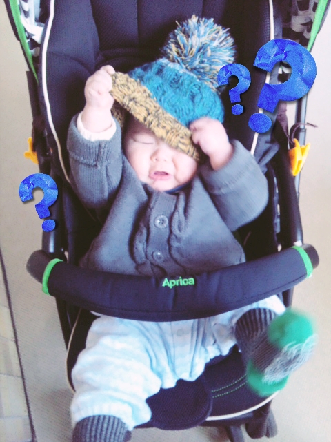 ニット帽を自分で掴んでいないいないばぁみたいなんしてたから写真撮ろうとしたら