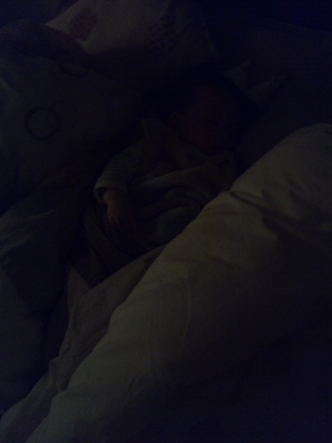 この日は旦那が寝かしつけて、落ちないように毛布や枕でバリケードしたつもりだったからね;;