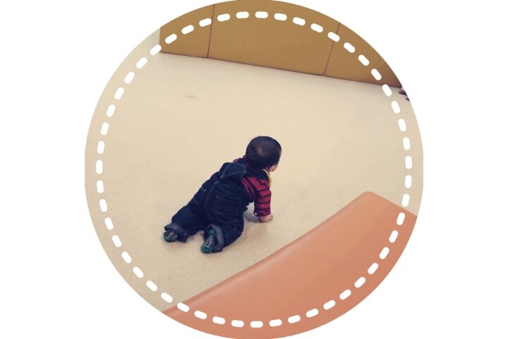 ららぽーとのプレイスペースでハイハイするはるたん。