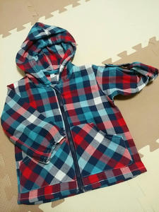 黄色と緑のチェックも色違いであって、はるたんにはそっちの方が似合いそうだったんだけど、旦那も私も好みの色はこっち…