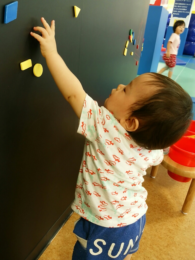 前怖がってたトランポリンみたいなゾーンも気になるらしく、やたら指差して「でゅえ!でゅえ!」