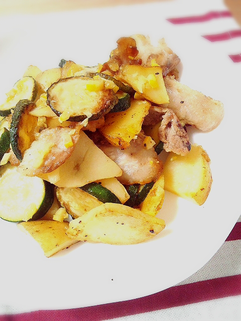 ズッキーニとじゃがいもと豚小間のレモン塩炒め。