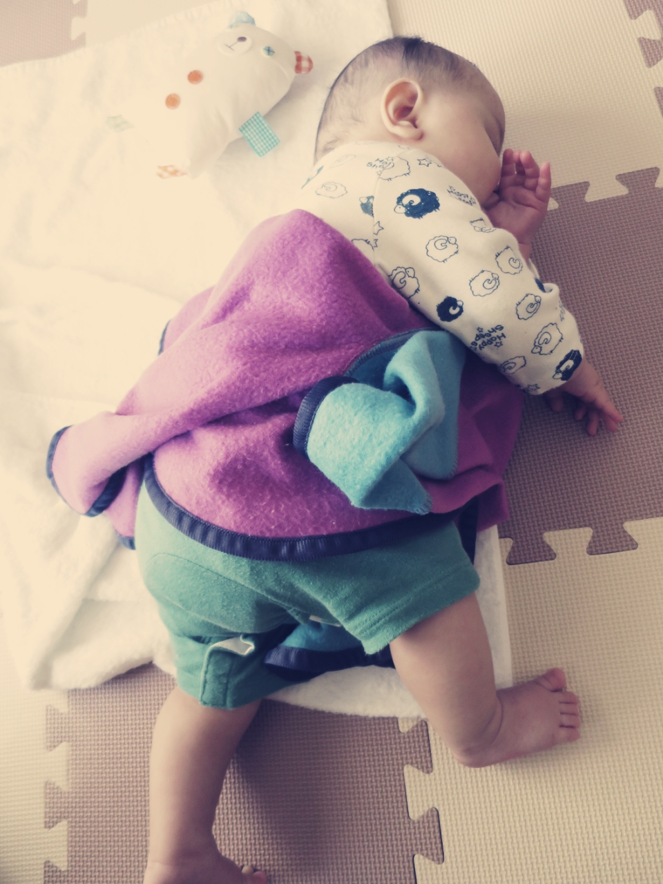 時々、ぅわーーん!から寝返りをして更に大泣きをするっていうのをやるんだけど、その途中で寝たというスタイル。