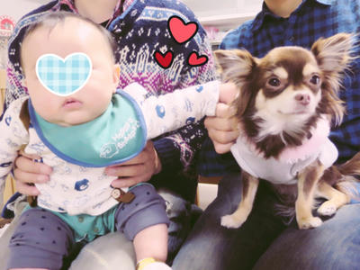 はるたん最初はぐずぐずやったし、わんこちゃんも警戒心が強く、あんまりはるたんに近寄ってこなかったけど帰り際にツーショットが撮れた♡