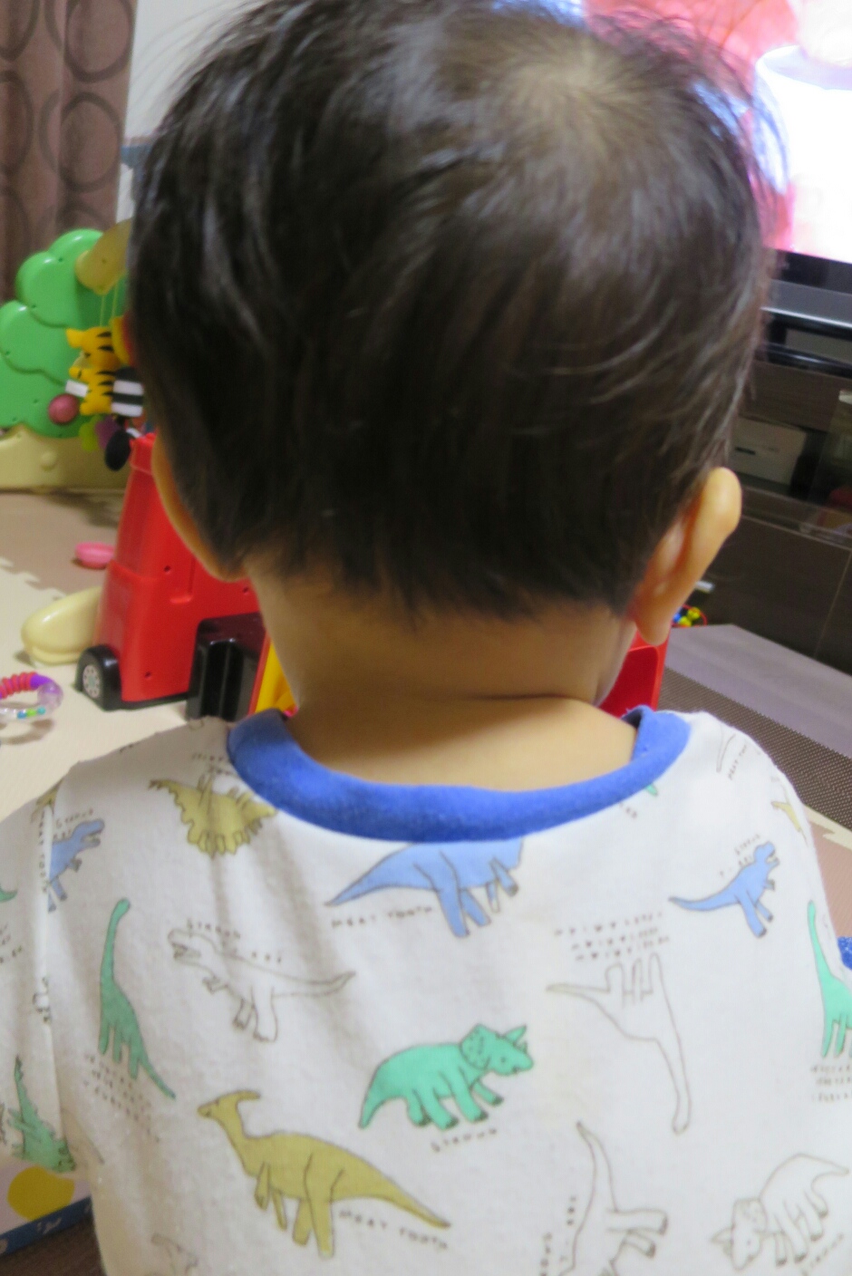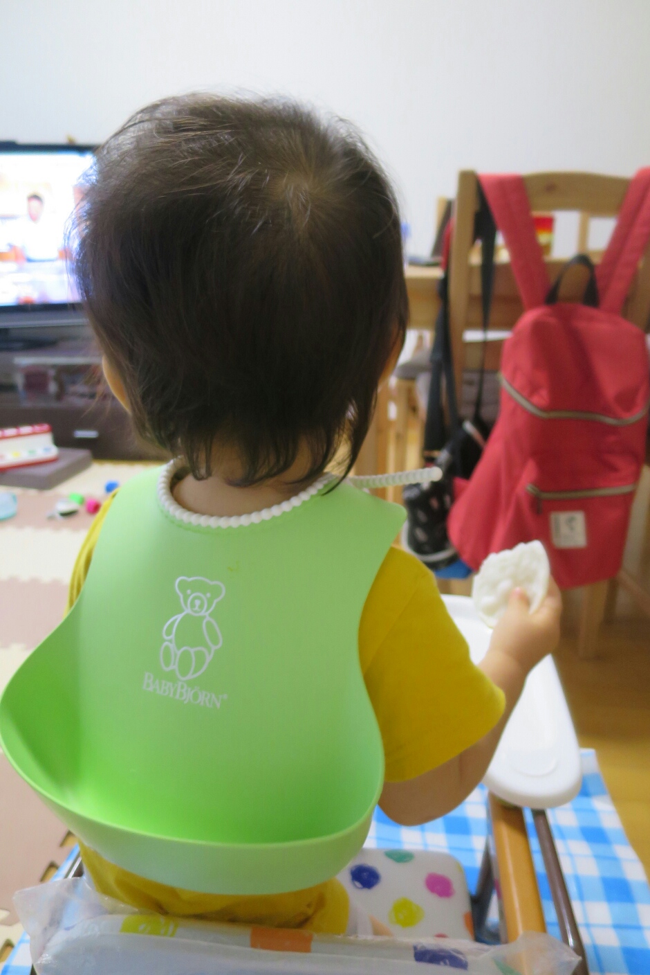 下にはシートを敷いて、最近よく見てくれるようになったEテレをつけ、おやつを手渡し、大人しくしてておくれ~