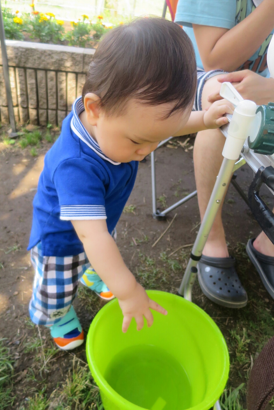 水で遊ぶはるたんがびしょびしょになるのを見て、服が濡れないように水の触り方を一生懸命教えてくれてて和んだ-!
