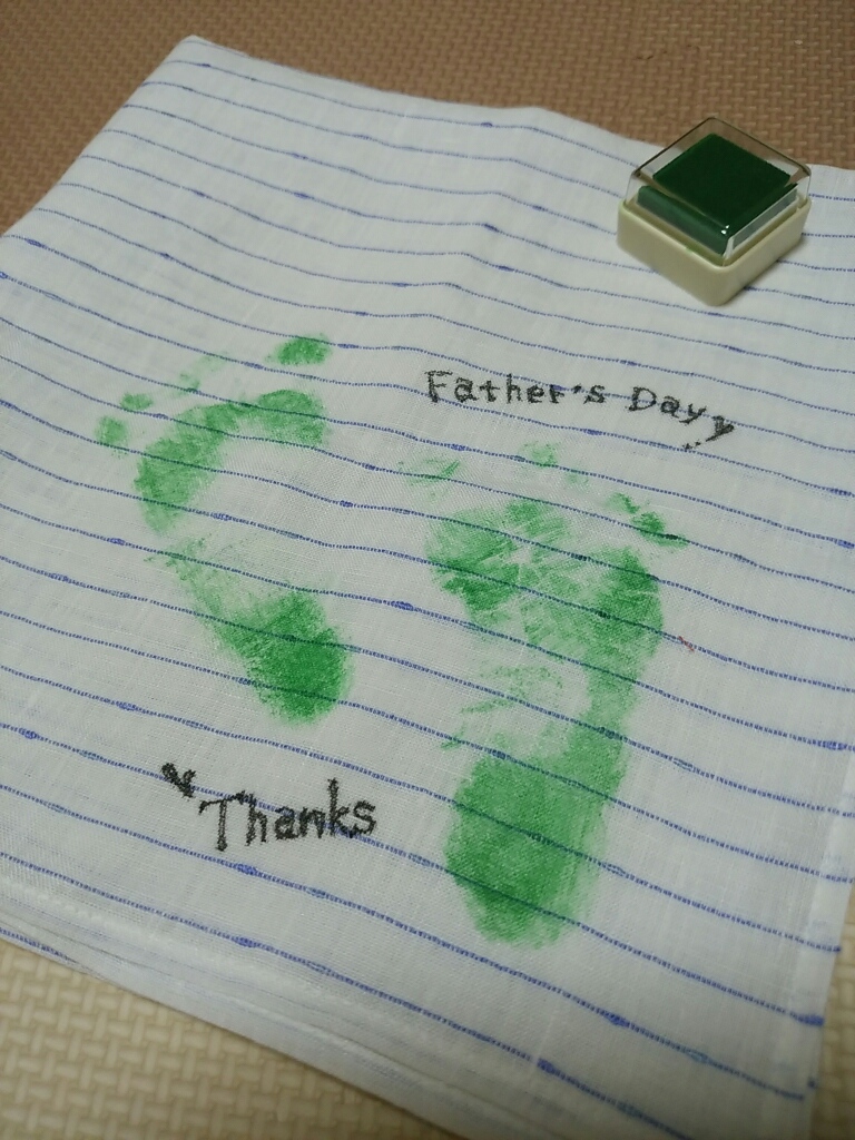 ハンカチにーはるたんの足形をポン♪