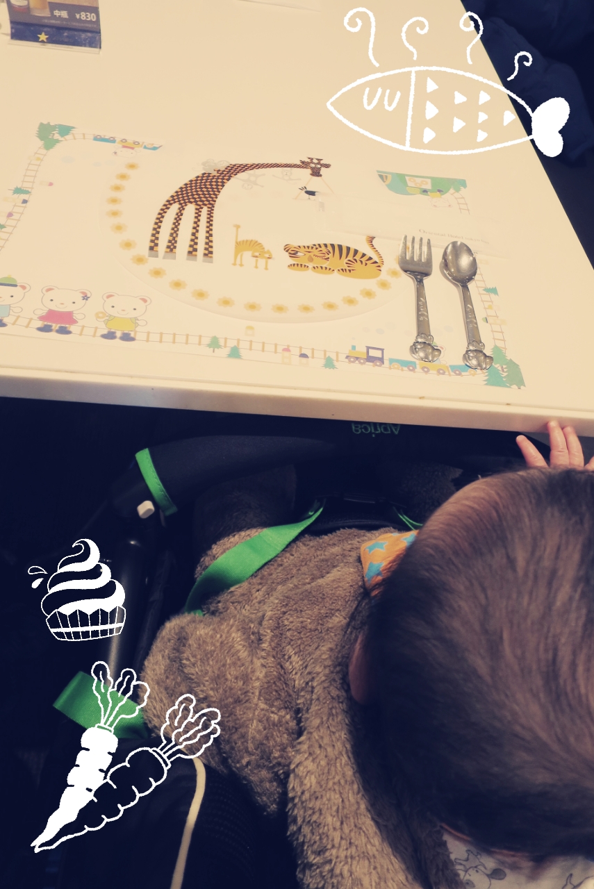 予約してたので通されたお席には子ども用の準備もちゃんとされてた。