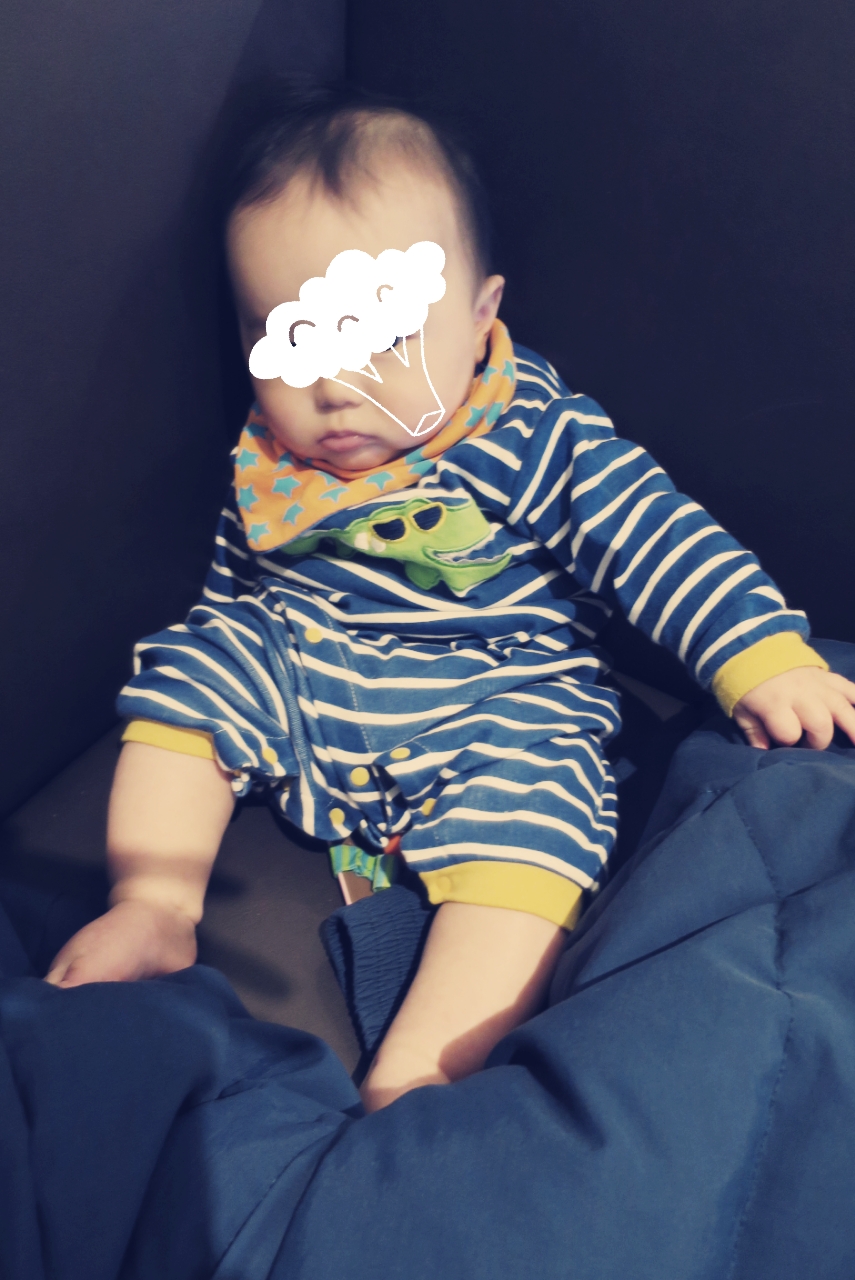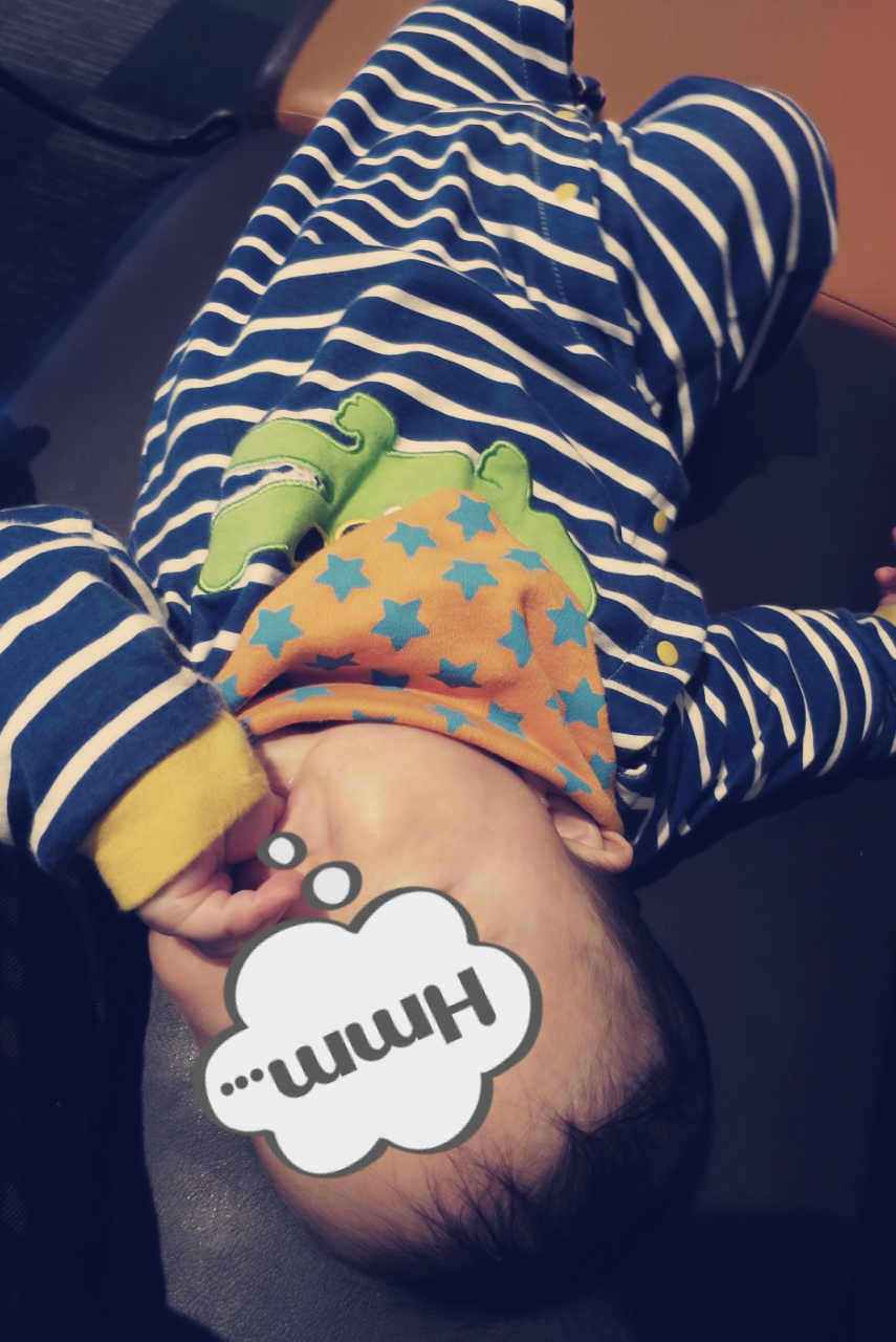最初はベビーカーに乗せてたけど、ぐずぐずしてきたのでソファに移動。
