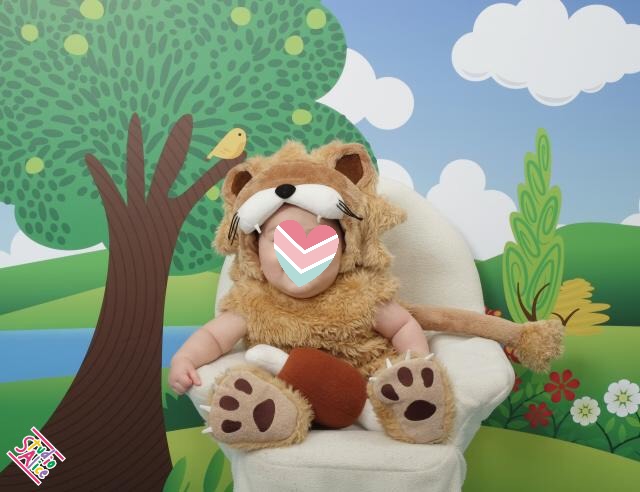 ハーフバースデーの背景で卵の殻に入ってるのはひよこの着ぐるみで撮るのが多いらしい。