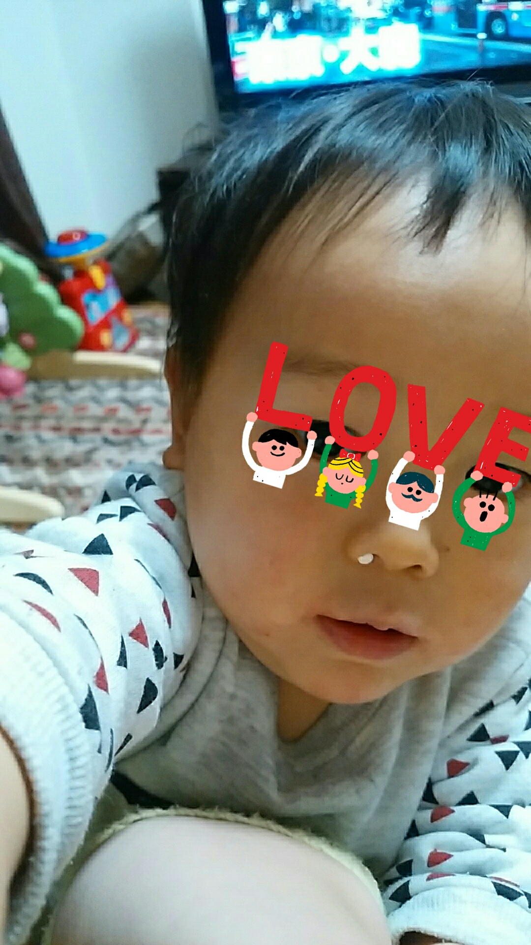 後でネタばらしにと、はるたんの目の前で旦那がお面を付けたり外したりしたけどお面を付けるとちょっと恐いみたいだった。