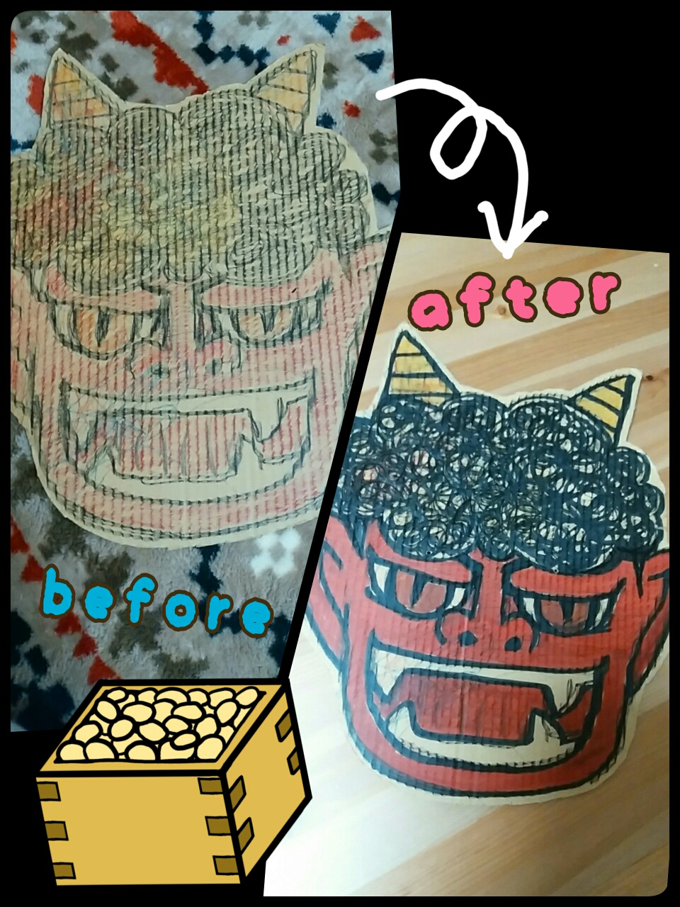 去年は鬼のコスプレだけで終わったけど、今年は豆まき出来て良かったーー